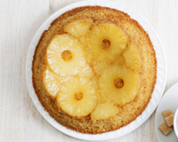Versez le caramel chaud au fond d'un moule à tarte ou à bords hauts, puis déposez les rondelles d'ananas par dessus (même si le caramel recouvre pas tout le fond du moule).