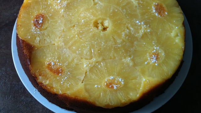 Beurrez un moule à manquer, déposer les tranches d'ananas et verser la préparation dans le moule.