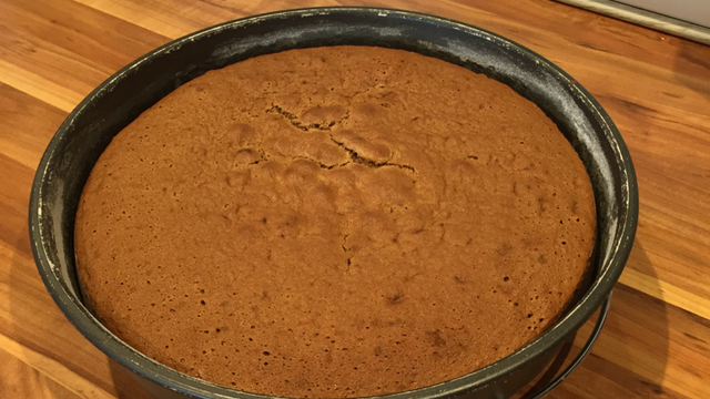 Verser la préparation dans un moule à manqué, enfourner 20 à 25 minutes dans un four préchauffé à 180° C.