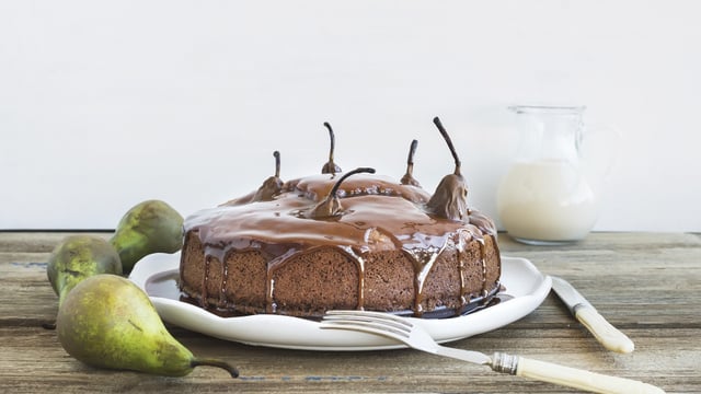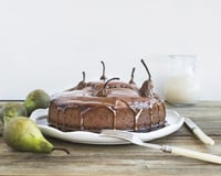 Un gâteau moelleux et fondant avec des poires entières.