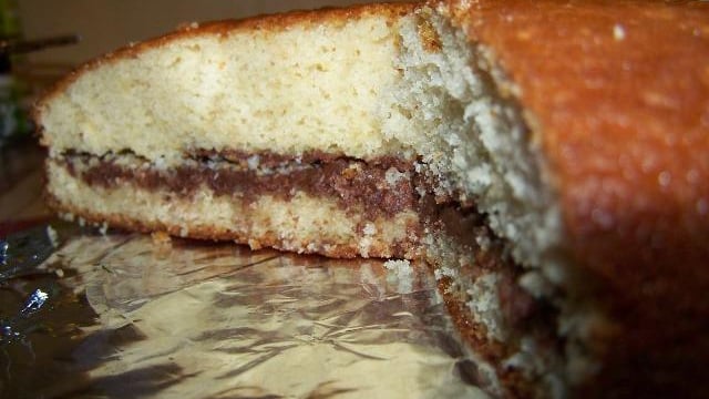 Quand le gâteau a refroidit, coupez-le en deux dans le sens de la largeur. Séparez les deux parties délicatement pour ne pas les casser.
