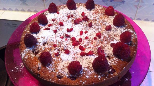 Servez le gâteau tiède, de préférence avec un coulis de framboise.