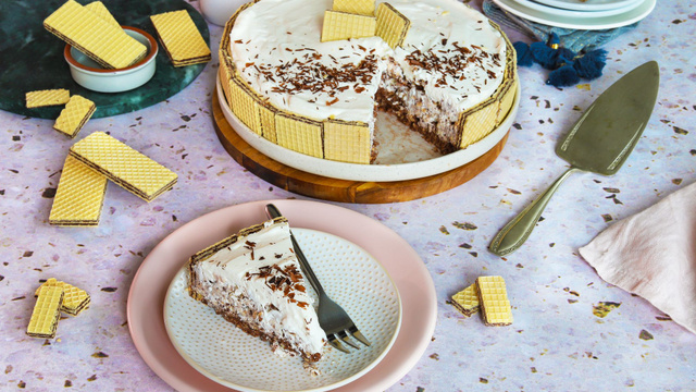 Entre cheesecake léger et tarte, ce gâteau sans cuisson est un nuage de gourmandise super facile à préparer... avec des gaufrettes et de la crème Chantilly ! Idéal pour pâtisser à quatre mains avec les enfants, ce gâteau est parfait comme dessert à la fin d'un repas ou bien comme goûter.