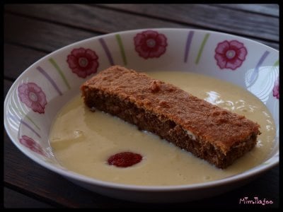 Pour finir : vous pouvez accompagner ce gâteau de crème anglaise ou tout simplement saupoudrer le gâteau de sucre glace.