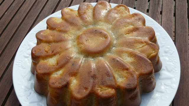 Verser dans le moule et faire cuire à 180°C (Th 6) durant 45 min (pour mon four). Attendre quelques minutes avant de démouler et servir froid.
