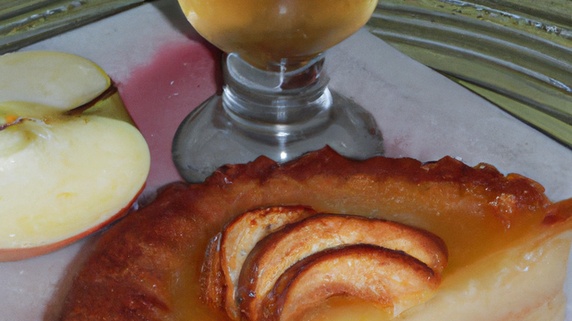 Etaler la pâte sablée dans un moule à bords hauts. Couper les pommes en lamelles et les étaler sur la pâte. Faire bouillir la préparation pour pudding avec le cidre, le sucre et le sucre vanillé.