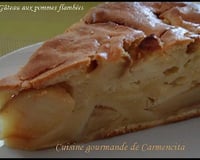 Chauffer le four th 6 (180°C). Beurrer (10g) et sucrer (20g) un moule à manquer et le glisser au frais. Peler les pommes, les couper en quartiers. Chauffer 30g de beurre dans une grande poêle. Faire sauter 2 min les quartiers de pommes avec 20g de sucre, sur feu moyen. Arroser de calvados et faire flamber.