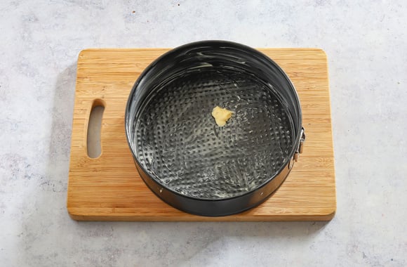 4Beurrez un moule à manque rond, possiblement à charnière, de 22 cm de diamètre. Réservez-le dans le réfrigérateur.