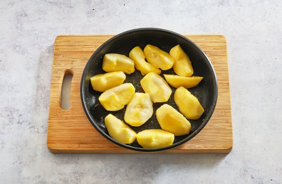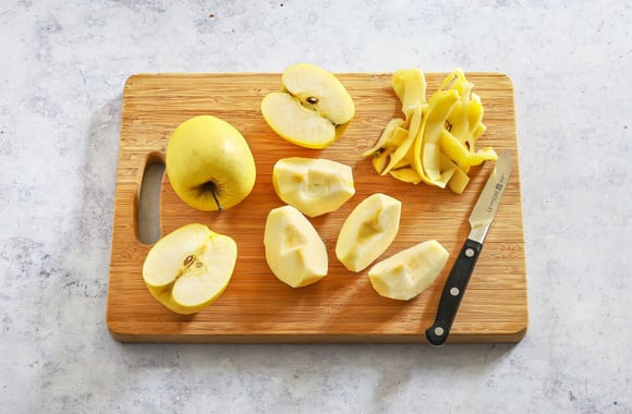 1Lavez les pommes, épluchez-les, ôtez-en les graines et le trognon, coupez-les en quartiers.