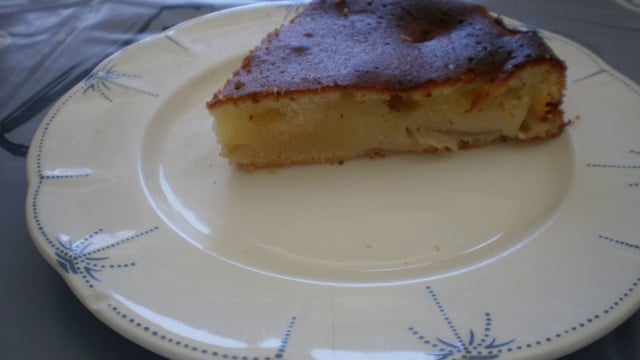 Posez les tranches de pomme sur un moule beurré et mettre la préparation précédente.
