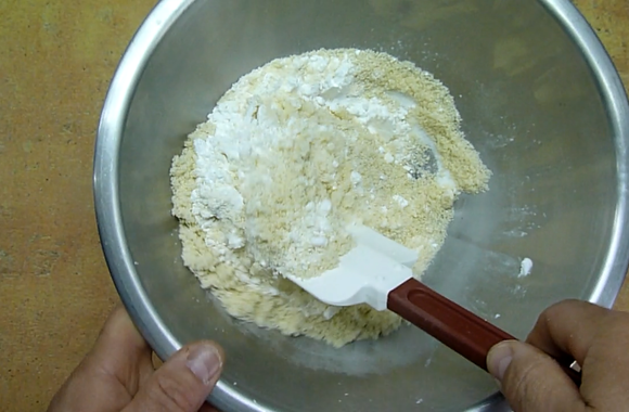 2Tamiser la poudre d’amande, le sucre glace, la levure et la farine.