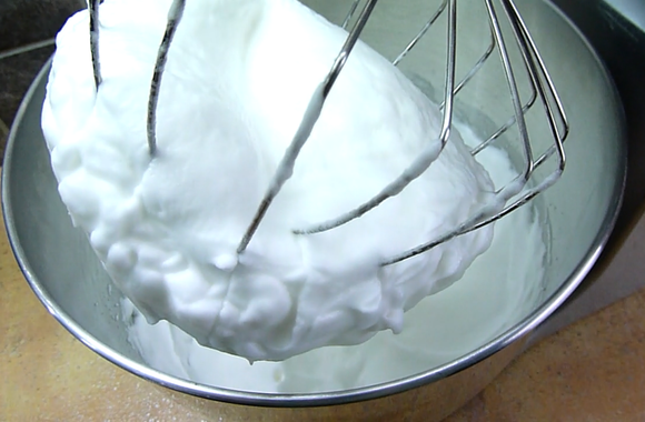 3Monter au batteur les blancs d’œufs avec le sucre en poudre.