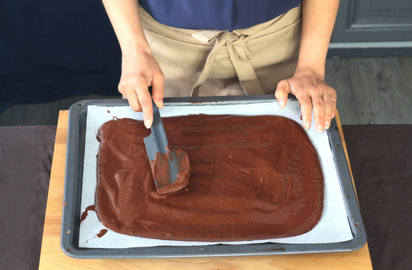 19Ajoutez le reste de la mousse au chocolat. Lissez avec le dos d'une cuillère.
