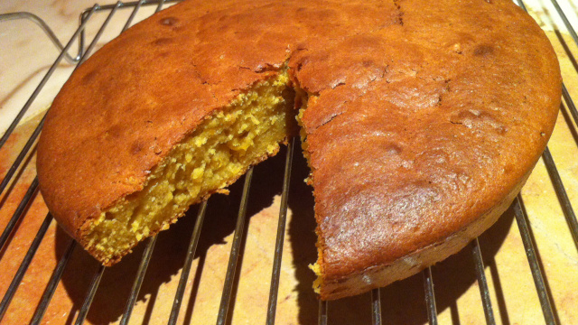Dans un saladier, mettre les oeufs, battre, ajouter le reste de sucre, le sucre vanillé et le sel, battre de nouveau. Ajouter la farine avec la levure et le beurre fondu, bien battre. Ajouter la fleur d'oranger puis votre purée de giraumon, mettre dans un moule rond. Enfourner 35 min à four chaud pendant 180°C.
