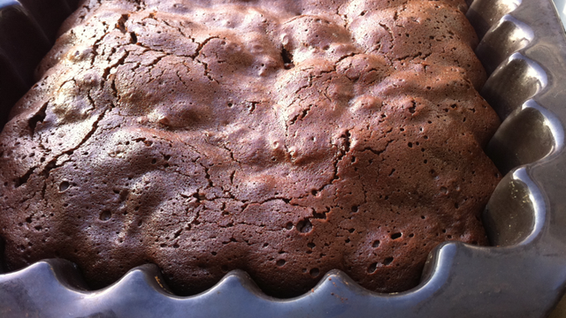 Le gâteau doit être légèrement tremblotant au milieu. Le dessus craquelé.