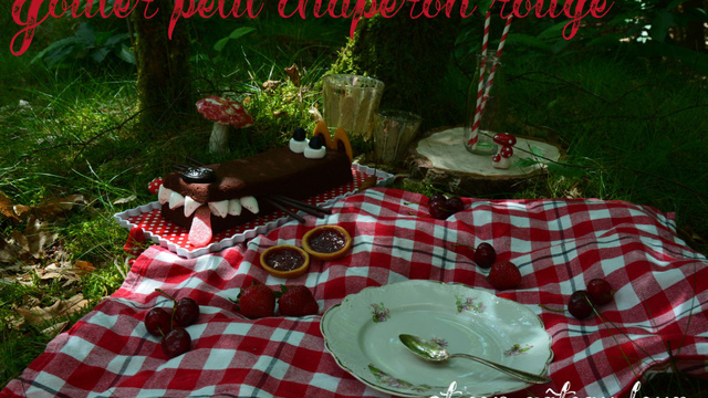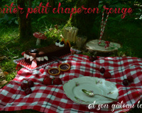 Sortez votre nappe à carreaux, des petits champignons en porcelaine, de la mousse, des cerises, des fraises pour faire joli et parce que c'est bon et voilà un goûter digne du petit chaperon rouge.