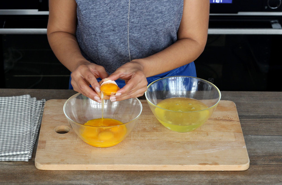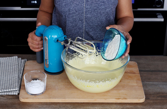 4Battez les jaunes d’œufs avec le sucre jusqu'à ce qu'ils blanchissent et doublent de volume.