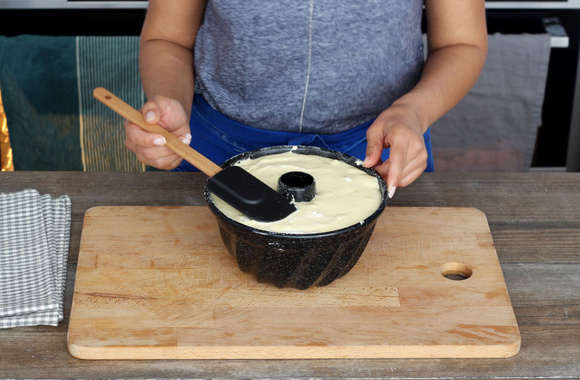 9Versez le mélange dans le moule, enfournez et faites cuire pendant 45 minutes.