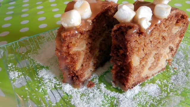 Ajoutez l'alcool + les pommes. Mettre dans le moule et faire cuire 90mn.
