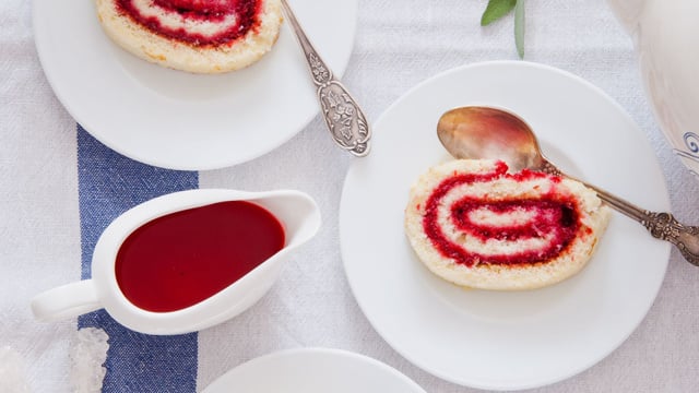 Rouler dans un torchon la pâte une première fois. Déroulez et tartinez de framboise et roulez à nouveau.