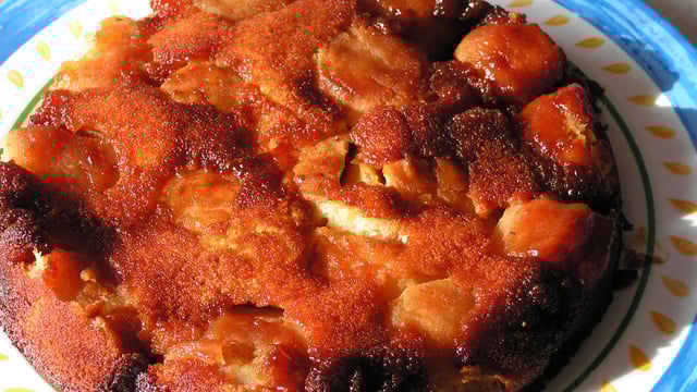 Fouetter le reste de beurre fondu, le reste de sucre et le sucre vanillé. Ajouter les œufs un à un puis le mélange farine-levure-poudre d'amande, puis terminer par la crème fraîche. Fouetter 2 mn. Verser la pâte sur les pommes et cuire au four préchauffé à 180° pendant 30 mn. Laisser reposer 5 mn (pas plus, sinon le caramel va durcir et coller au moule) puis démouler sur un plat de service.