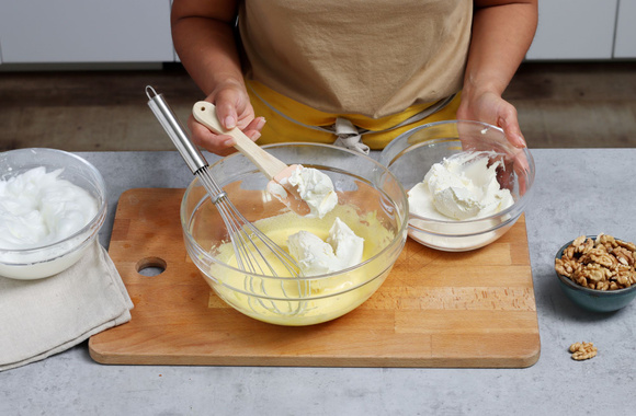 6Incorporez les blancs en neige à la préparation au mascarpone.