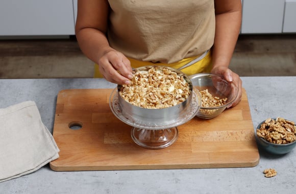 12Saupoudrez de Noix du Périgord AOP concassées.