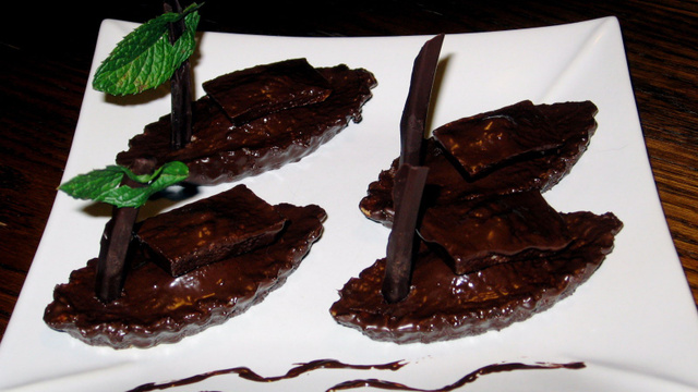 Réaliser les mâts des bateaux en coulant du chocolat fondu dans la rainure du couvercle d'une boîte plastique (à défaut de mieux). Mettre au réfrigérateur. - 4