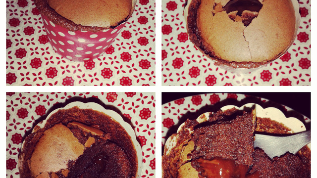 Faire cuire pendant 10 à 15 minutes à 150°C. L'intérieur du gâteau ne doit pas être complètement cuit. Texture d'un moelleux. Dégustez tiède pour garder l'insert coulant.