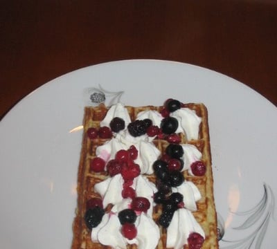 Gaufre chantilly avec quelques fruits rouges des bois.