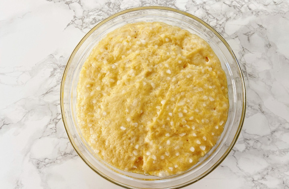 Ajoutez les œufs battus puis le lait-beurre.