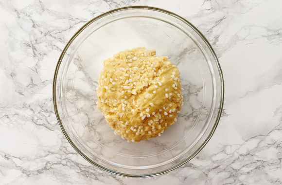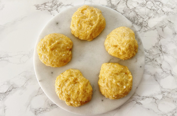 4Dégazez la pâte et prélevez des boules d'environ 60 g.