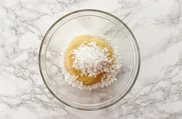 2Incorporez le sucre perlé à votre pâte puis amalgamez le tout délicatement.