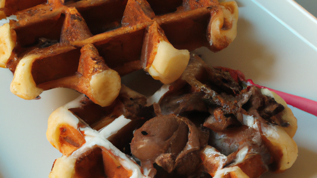 Avant de servir, garnir chaque gaufre avec 2 boules de glace vanille et napper de chocolat fondu chaud. (elles peuvent se déguster aussi avec du sucre ou de la confiture).