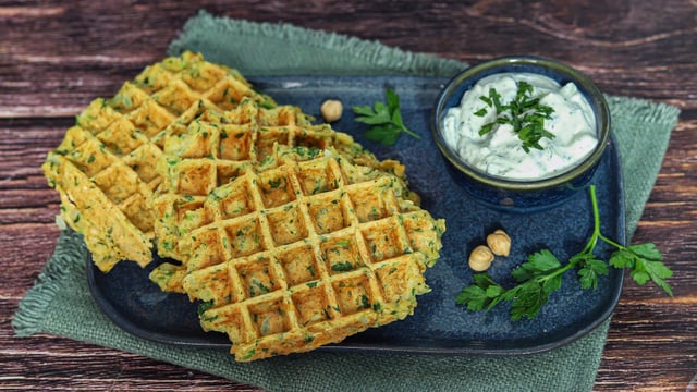 Servez ces gaufres avec une sauce à base de fromage blanc et d'ail ou de houmous. Accompagnez-les d'une salade pour un repas sur le pouce équilibré.