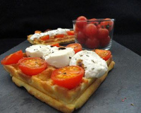 Des gaufres salées comme je les aime, simples et délicieuses ! A base de chèvre et tomates cerises, le tout arrosé de vinaigre balsamique, elles constituent une excellente entrée. Vous pouvez rajouter ce qui vous convient, selon le goût de tout un chacun.