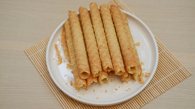Une fois cuit, rouler la gaufrette sur le dos d'une grosse cuillère en bois.