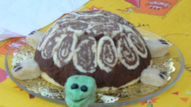Gâteau à la mousse au chocolat en forme de tortue qui régalera les petits et les grands.
