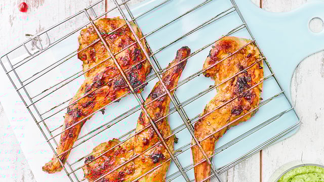 Égoutter les gigolettes et les faire griller au barbecue, 10 à 15 min par face. Assaisonner de sel et de poivre.