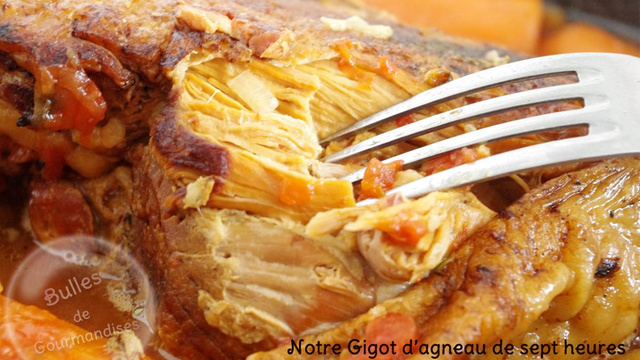 Faites bien revenir assez longuement le gigot dans l'huile et le beurre, afin qu'il soit bien doré sur toutes les faces. Le pratique de ce plat, il peut se préparer la veille et le lendemain, c'est juste du plaisir !