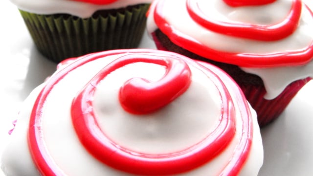 Remplir une poche à douille munie d'une douille lisse de petit diamètre avec et forme des spirales sur les cupcakes. - 3