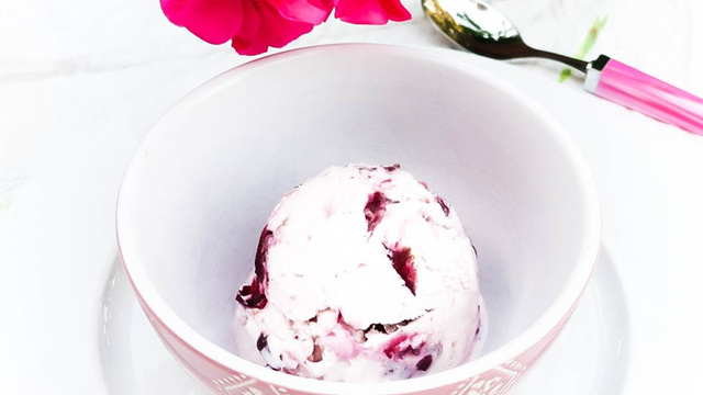 Pour réaliser la glace avec sorbetière, préparez votre appareil comme à l'habitude versez la préparation et laissez prendre 30 minutes environ. 1 minute avant le fin ajoutez les cerises, la glace doit conserver en partie sa couleur blanche.