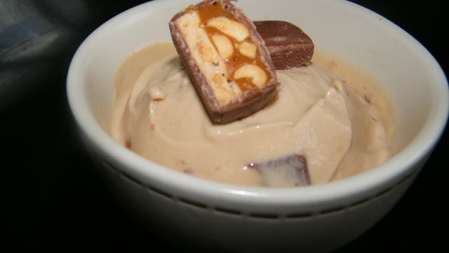 Coupez 1 snickers en morceaux (pas trop fin) et réservez au congélateur.