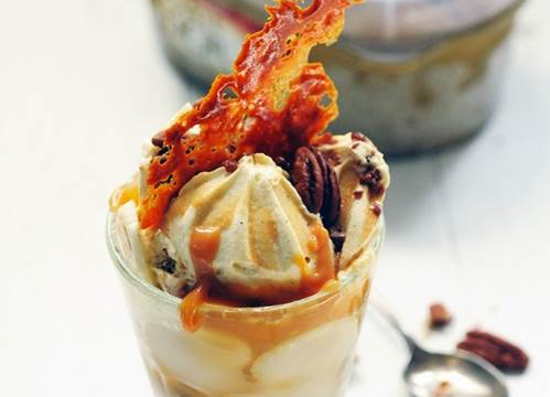 Terminez en déposant une rosette de Crème glacée Carte d'Or® Façon Glacier Vanille et Noix de Pécan.