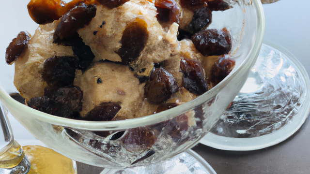 Servir la glace moka avec les raisins au dessus...chantilly en plus...