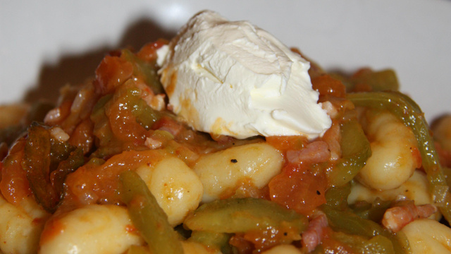 Dans une casserole d'eau bouillante salée, faites cuire les gnocchis jusqu'à ce qu'ils remontent à la surface. Égouttez-les. Mélangez-les à la préparation aux légumes puis disposez-les dans une assiette creuse, surplombez d'une quenelle de mascarpone pour chaque assiette. Servez !