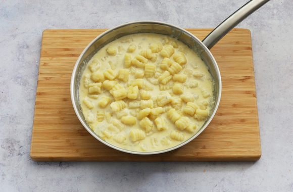 A ébullition, salez l'eau et versez-y les gnocchi peu à peu. Dès que les gnocchi remontent à la surface, égouttez-les au fur et à mesure avec un écumoire et déposez-les dans la sauce au gorgonzola.