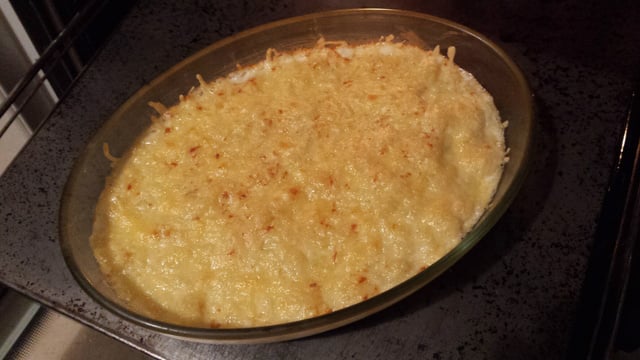 Enfourner le tout à 275° en mode grill pendant une dizaine de minute (à vous de juger, il faut que ça gratine à peine)