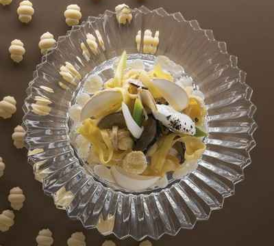 - 7Coupez les têtes de cèpes réservées en copeaux. Répartissez les pâtes dans des assiettes chaudes et terminez avec la ricotta au poivre et les copeaux de cèpes.