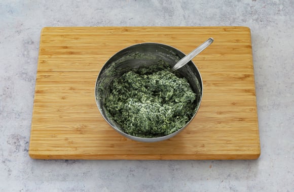 1Lavez les épinards, ôtez la partie dure de la tige puis faites-les cuire pendant quelques minutes dans de l'eau bouillante. Egouttez, laissez refroidir.